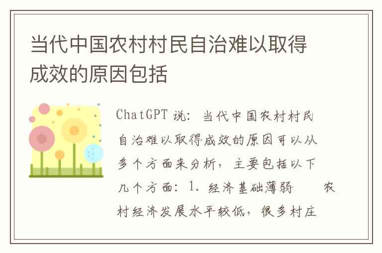 当代中国农村村民自治难以取得成效的原因可以从多个方面来分析,主要包括以下几个方面: