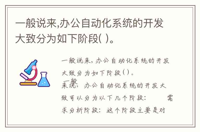 这些阶段的顺序和内容大体上适用于大多数办公自动化系统的开发过程。