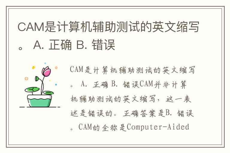 CAM并非计算机辅助测试的英文缩写,这一表述是错误的。正确答案是B. 错误。
