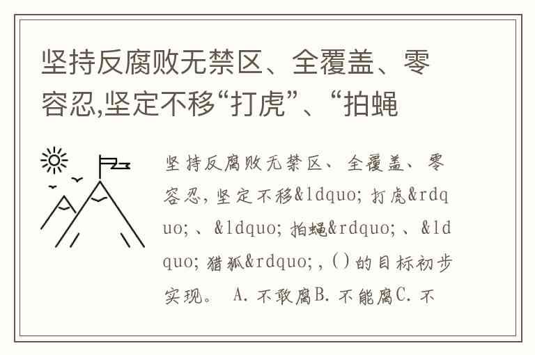 坚持反腐败无禁区、全覆盖、零容忍,坚定不移“打虎”、“拍蝇”、“猎狐”,( )的目标初步实现。 A.不敢腐B.不能腐C.不想腐D.不再腐