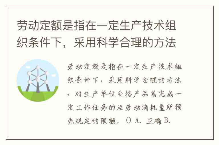 劳动定额是指在一定生产技术组织条件下,采用科学合理的方法,对生产单位合格产品或完成一定工作任务的活劳动消耗量所预先规定的限额。() A. 正确 B. 错误