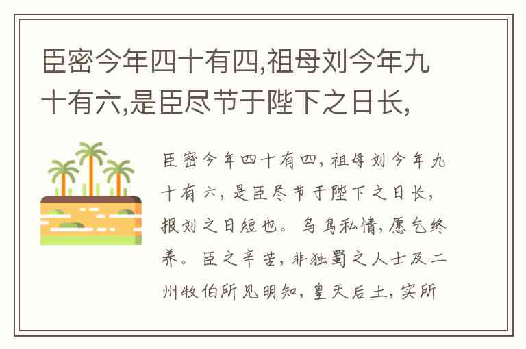 以“臣密今年……祖母今年……”对称,“四十有四”与“九十有六”均为数量短语表年龄,并列陈述两人岁数,属于并列复句。