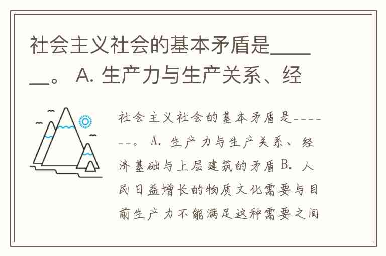 社会主义社会的基本矛盾是______。 A. 生产力与生产关系、经济基础与上层建筑的矛盾 B. 人民日益增长的物质文化需要与目前生产力不能满足这种需要之间的矛盾 C. 无产阶级与资产阶级的矛盾 D. 人民内部矛盾