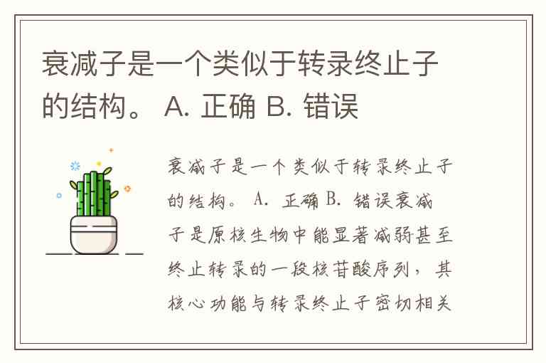衰减子是一个类似于转录终止子的结构。 A. 正确 B. 错误