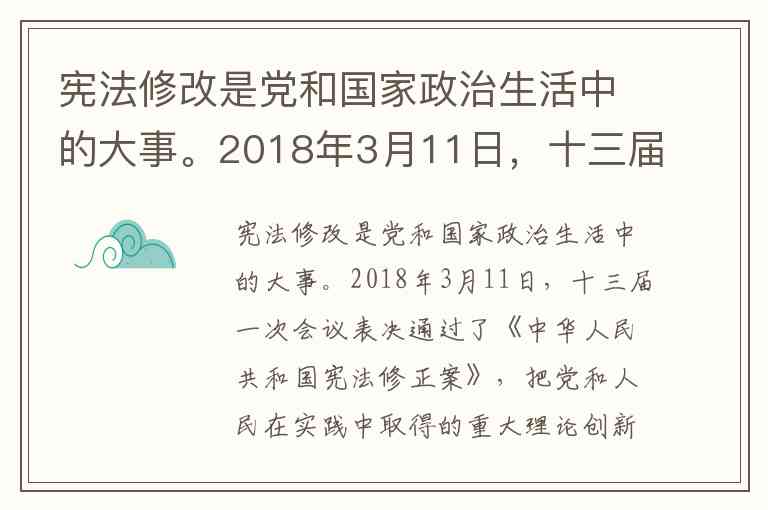 2018年宪法修正案将党和人民在实践中取得的重大创新成果上升为宪法规定,体现了宪法与时俱进的品格与治国安邦总章程的本质。从选项来看,①③