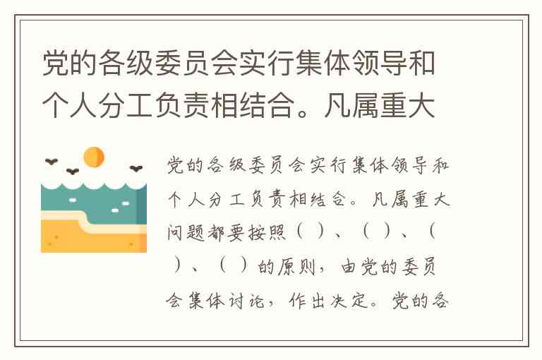 党的各级委员会实行集体领导和个人分工负责相结合。凡属重大问题都要按照( )、( )、( )、( )的原则,由党的委员会集体讨论,作出决定。