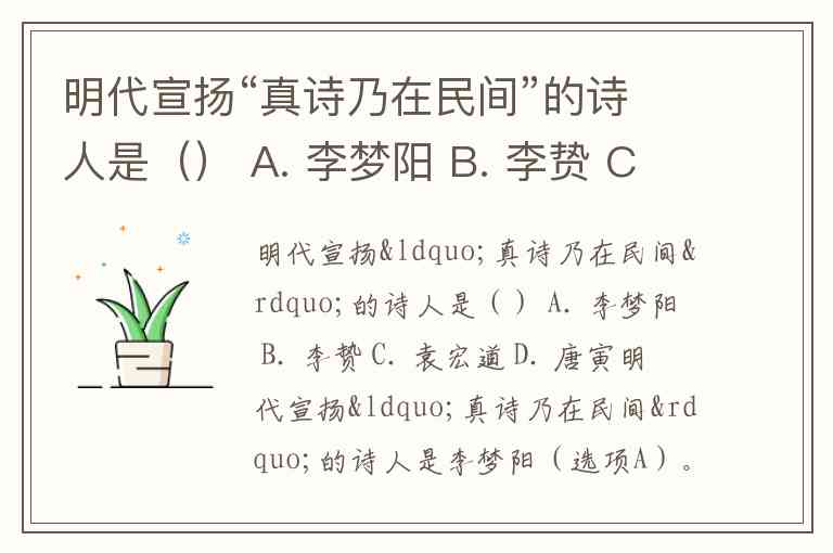 明代宣扬“真诗乃在民间”的诗人是() A. 李梦阳 B. 李贽 C. 袁宏道 D. 唐寅