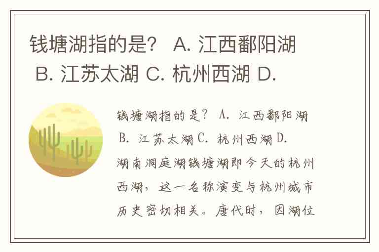 钱塘湖指的是? A. 江西鄱阳湖 B. 江苏太湖 C. 杭州西湖 D. 湖南洞庭湖