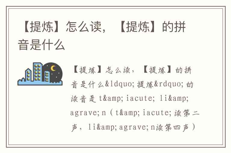 【提炼】怎么读,【提炼】的拼音是什么