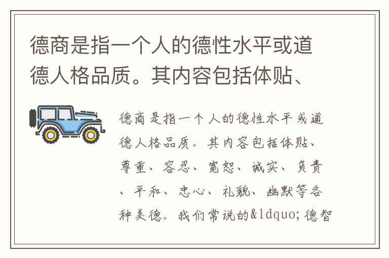 德商是指一个人的德性水平或道德人格品质。其内容包括体贴、尊重、容忍、宽恕、诚实、负责、平和、忠心、礼貌、幽默等各种美德。我们常说的“德智体”中是把德放在首位的;科尔斯说,品格胜于知识。可见,德是最重要的。一个有高德商的人,一定会受到信任和尊敬,自然会有更多成功的机会。古今中外,一切真正的成功者,在道德上大都达到了很高的水平。同时,现实中的大量事实也说明,很多人的失败,不是能力的失败,而是做人的失败、道德的失败。 对这段文字的主旨概括最准确的是( )。 A. 解释德商的含义及内容 B. 强调德商对成功的重要性 C. 比较德商与知识的轻重 D. 突出德育的重要意义