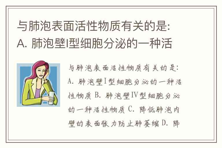 与肺泡表面活性物质有关的是: A. 肺泡壁I型细胞分泌的一种活性物质 B. 肺泡壁Ⅱ型细胞分泌的一种活性物质 C. 降低肺泡内壁的表面张力防止肺萎缩 D. 降低肺泡内壁的表面张力防止肺扩张 E. 增强肺泡内壁的表面张力防止肺扩张