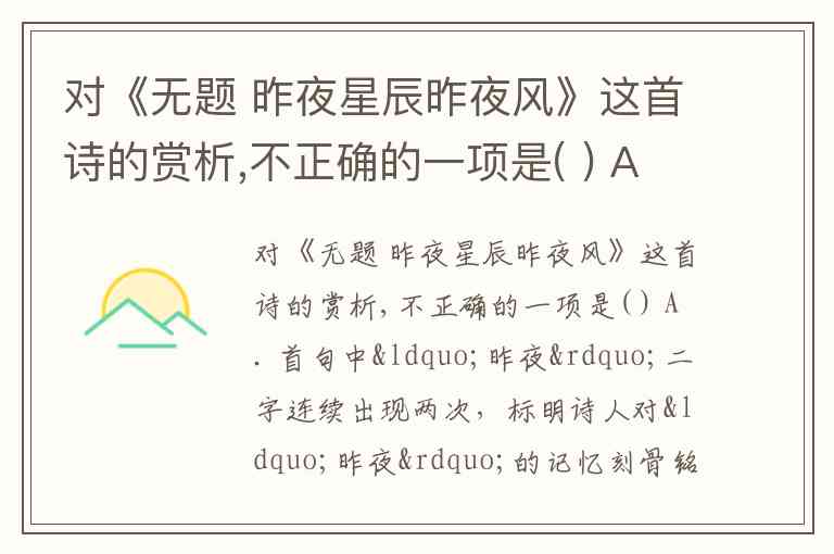 A 正确:首句“昨夜”重复强调记忆深刻,“星辰”“风”“画楼”“桂堂”等意象共同构建了浪漫而珍贵的昨夜场景。