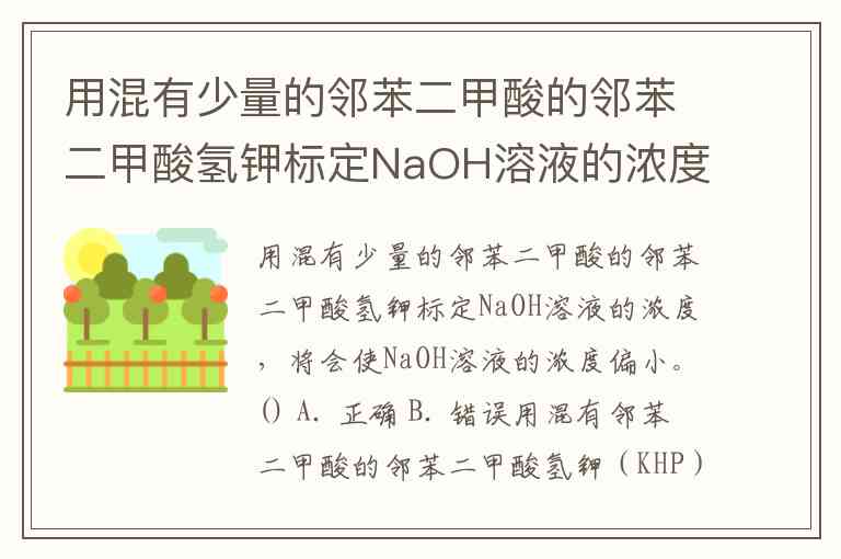 用混有少量的邻苯二甲酸的邻苯二甲酸氢钾标定NaOH溶液的浓度,将会使NaOH溶液的浓度偏小。() A. 正确 B. 错误