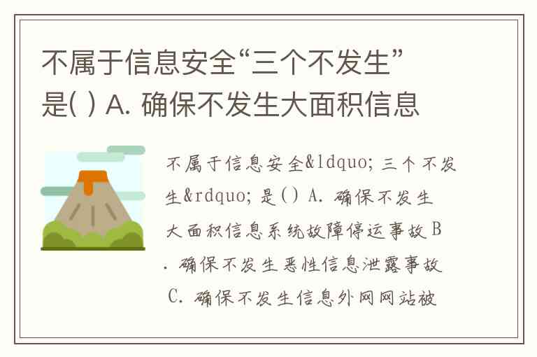 不属于信息安全“三个不发生”是( ) A. 确保不发生大面积信息系统故障停运事故 B. 确保不发生恶性信息泄露事故 C. 确保不发生信息外网网站被恶意篡改事故 D. 确保不发生信息内网非法外联事故