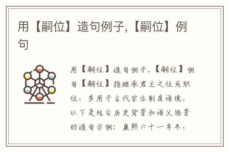 【嗣位】指继承君主之位或职位,多用于古代宗法制度语境。以下是结合历史背景和语义场景的造句示例:
