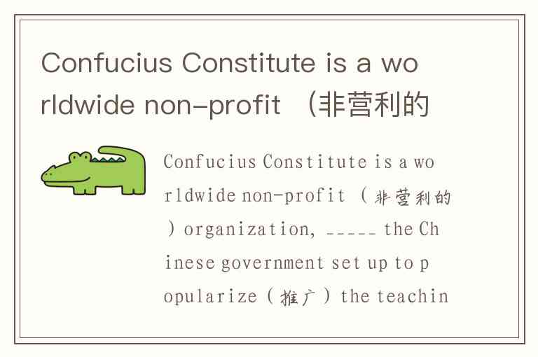 Confucius Constitute is a worldwide non-profit (非营利的)organization, _____ the Chinese government set up to popularize(推广)the teaching of Chinese and spread the Chinese culture. A. that B. it C. one D. ones