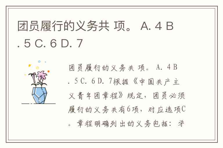 团员履行的义务共 项。 A. 4 B. 5 C. 6 D. 7