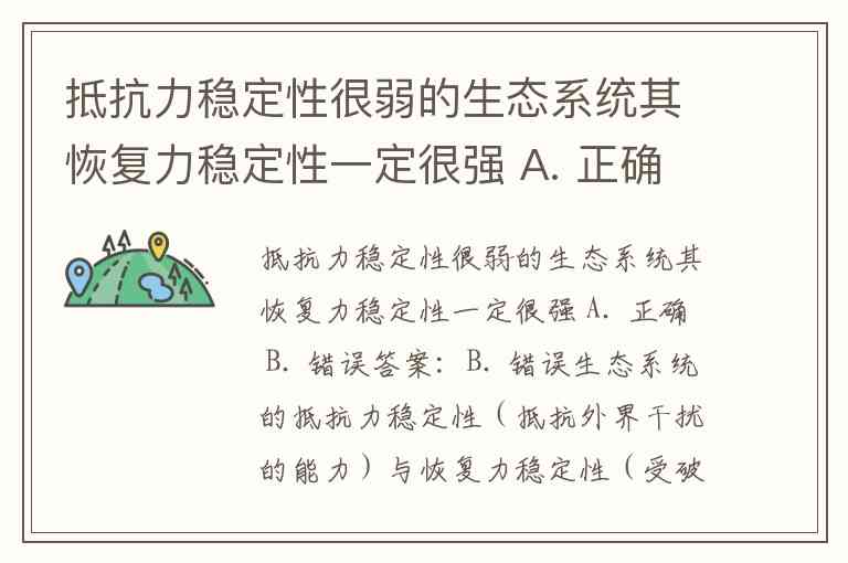 抵抗力稳定性很弱的生态系统其恢复力稳定性一定很强 A. 正确 B. 错误