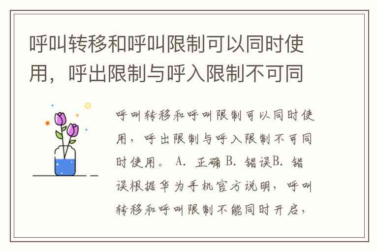 题目中"呼出限制与呼入限制不可同时使用"的表述虽然可能成立(部分手机可能允许单独设置呼出或呼入限制),但核心错误在于前半句对呼叫转移与呼叫限制兼容性的判断。因此整个陈述存在事实错误。