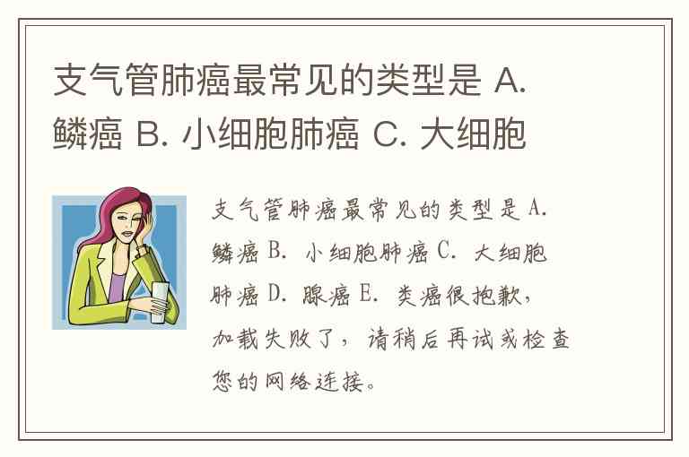 支气管肺癌最常见的类型是 A. 鳞癌 B. 小细胞肺癌 C. 大细胞肺癌 D. 腺癌 E. 类癌