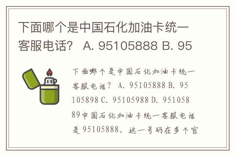 下面哪个是中国石化加油卡统一客服电话? A. 95105888 B. 95105898 C. 95105988 D. 95105889