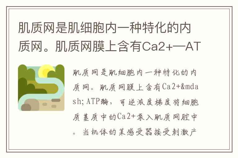 肌质网作为肌细胞内特化的内质网,其膜上的Ca²⁺-ATP酶(钙泵)通过消耗ATP实现Ca²⁺的逆浓度梯度转运,这一过程是肌肉收缩的关键调控环节。题目中不正确的选项是B,以下是具体分析: