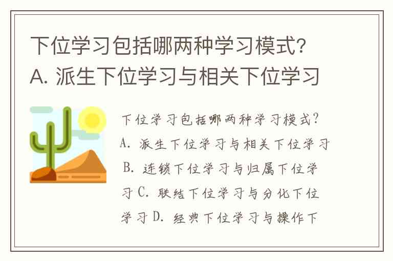 下位学习包括哪两种学习模式? A. 派生下位学习与相关下位学习 B. 连锁下位学习与归属下位学习 C. 联结下位学习与分化下位学习 D. 经典下位学习与操作下位学习