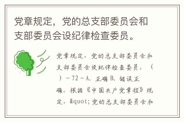 党章规定,党的总支部委员会和支部委员会设纪律检查委员。 ( ) - 72 - A. 正确 B. 错误
