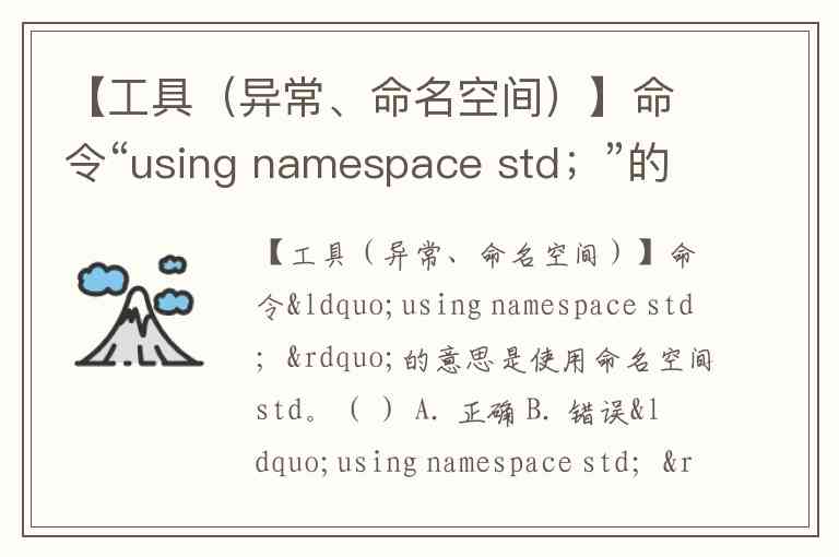 【工具(异常、命名空间)】命令“using namespace std;”的意思是使用命名空间std。( ) A. 正确 B. 错误