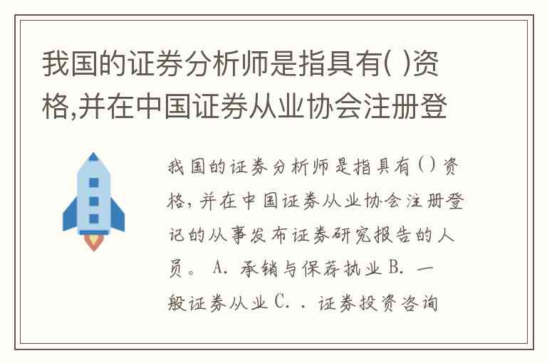 我国的证券分析师是指具有( )资格,并在中国证券从业协会注册登记的从事发布证券研究报告的人员。 A. 承销与保荐执业 B. 一般证券从业 C. . 证券投资咨询执业 D. 一般证券执业