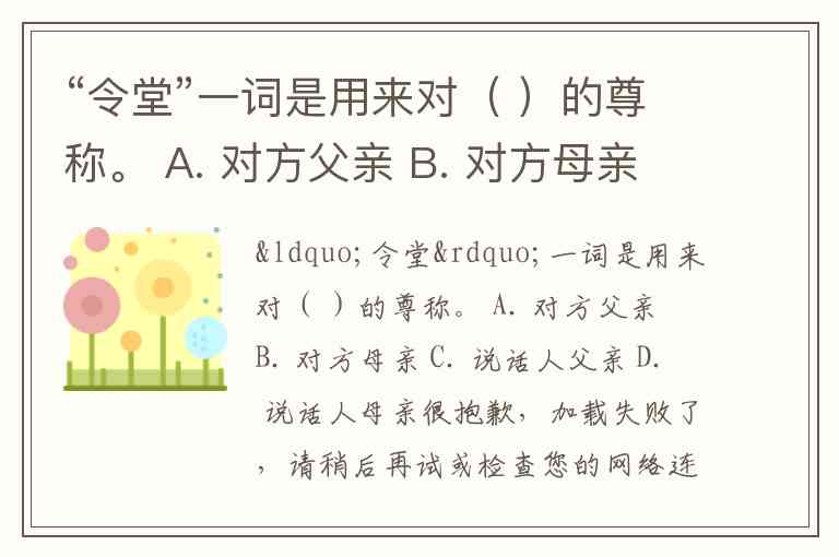 “令堂”一词是用来对( )的尊称。 A. 对方父亲 B. 对方母亲 C. 说话人父亲 D. 说话人母亲