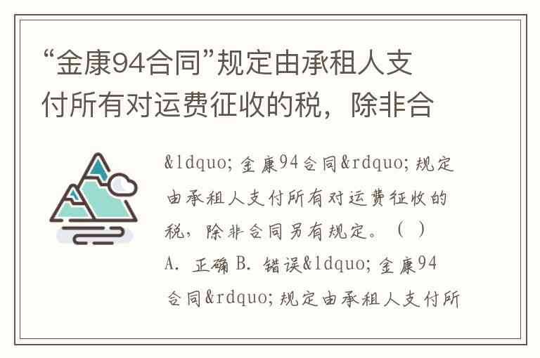 “金康94合同”规定由承租人支付所有对运费征收的税,除非合同另有规定。( ) A. 正确 B. 错误