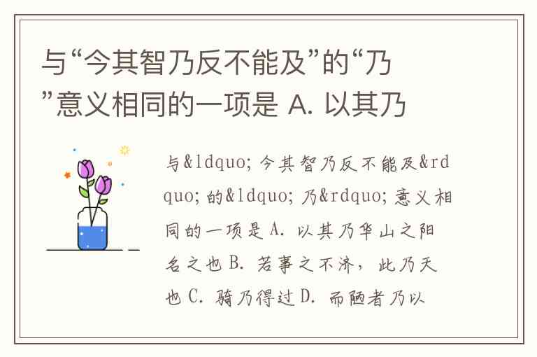 与“今其智乃反不能及”的“乃”意义相同的一项是 A. 以其乃华山之阳名之也 B. 若事之不济,此乃天也 C. 骑乃得过 D. 而陋者乃以斧斤考击而求之