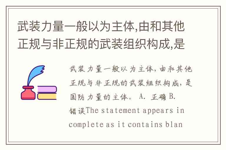 武装力量一般以为主体,由和其他正规与非正规的武装组织构成,是国防力量的主体。 A. 正确 B. 错误