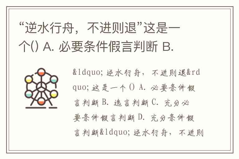 “逆水行舟,不进则退”这是一个() A. 必要条件假言判断 B. 选言判断 C. 充分必要条件假言判断 D. 充分条件假言判断