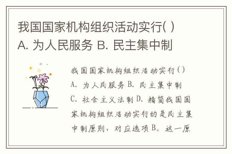 我国国家机构组织活动实行( ) A. 为人民服务 B. 民主集中制 C. 社会主义法制 D. 精简