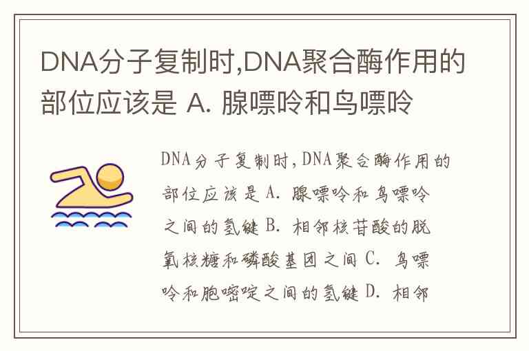 DNA分子复制时,DNA聚合酶作用的部位应该是 A. 腺嘌呤和鸟嘌呤之间的氢键 B. 相邻核苷酸的脱氧核糖和磷酸基团之间 C. 鸟嘌呤和胞嘧啶之间的氢键 D. 相邻核苷酸的脱氧核糖与含氮碱基之间