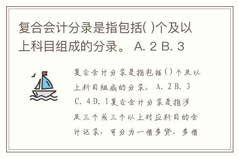 复合会计分录是指包括( )个及以上科目组成的分录。 A. 2 B. 3 C. 4 D. 1