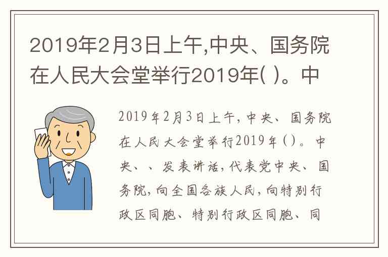 2019年2月3日上午,中央、国务院在人民大会堂举行2019年( )。中央、、发表讲话,代表党中央、国务院,向全国各族人民,向特别行政区同胞、特别行政区同胞、同胞和海外侨胞拜年。 A. 春节团拜会 B. 开年团拜会 C. 新年团拜会 D. 新春团拜会