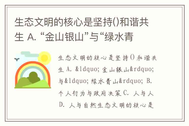 生态文明的核心是坚持()和谐共生 A. “金山银山”与“绿水青山” B. 个人行为与政府决策 C. 人与人 D. 人与自然