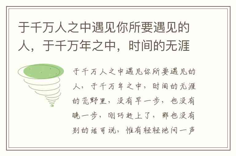 于千万人之中遇见你所要遇见的人,于千万年之中,时间的无涯的荒野里,没有早一步,也没有晚一步,刚巧赶上了,那也没有别的话可说,惟有轻轻地问一声:“噢,你也在这里吗?”这段话的作者是张爱玲。( ) A. 正确 B. 错误