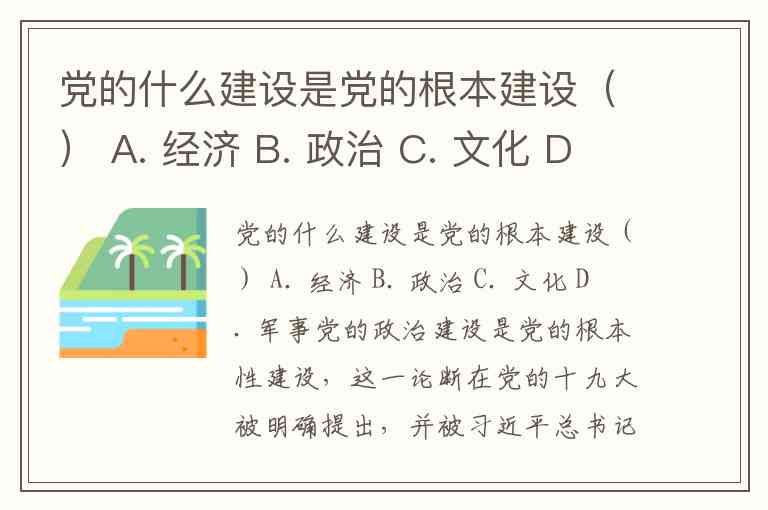党的什么建设是党的根本建设() A. 经济 B. 政治 C. 文化 D. 军事
