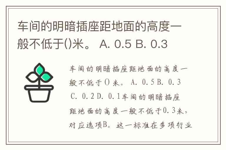 车间的明暗插座距地面的高度一般不低于()米。 A. 0.5 B. 0.3 C. 0.2 D. 0.1