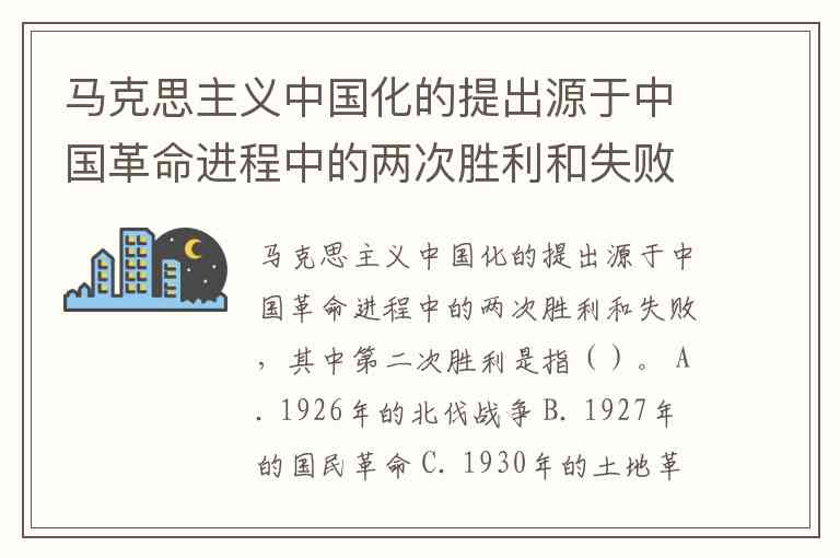 马克思主义中国化的提出源于中国革命进程中的两次胜利和失败,其中第二次胜利是指()。 A. 1926年的北伐战争 B. 1927年的国民革命 C. 1930年的土地革命战争 D. 1934年到1935年的第五次反围剿