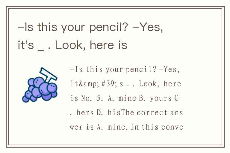 In this conversation, the question asks if the pencil belongs to the speaker, and the response confirms ownership. The possessive pronoun "mine" is used here to show that the pencil belongs to the speaker. The phrase "Look, here is No. 5" provides additional evidence that the pencil is the speaker’s, likely referring to a personalized mark or identifier.
