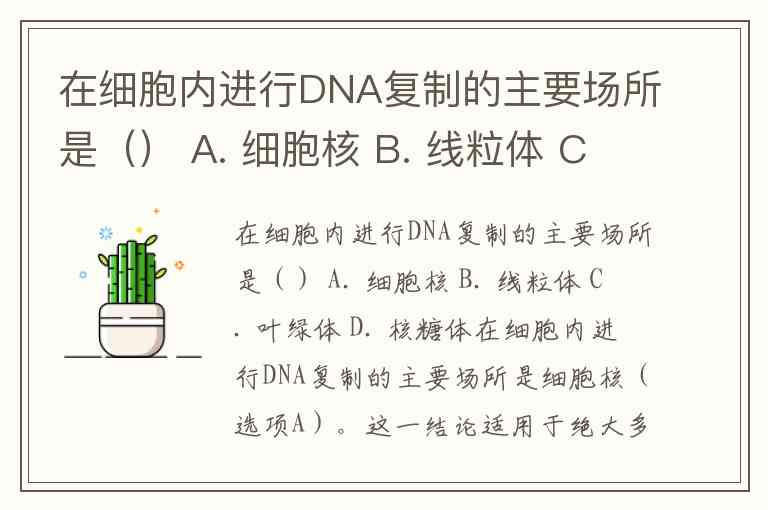 在细胞内进行DNA复制的主要场所是() A. 细胞核 B. 线粒体 C. 叶绿体 D. 核糖体