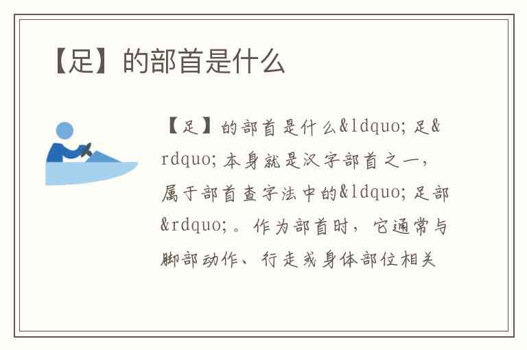 这个部首的特殊性在于它既是独立汉字,又是构字能力很强的偏旁,体现了汉字“因义构形”的特点——从字形上就能直观关联到与“脚”相关的含义。你还能想到哪些以“足”为部首的常用字呢?