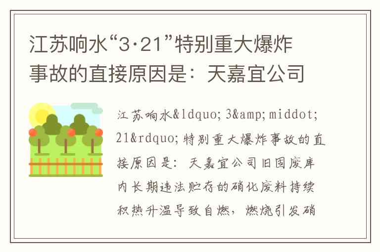 江苏响水“3·21”特别重大爆炸事故的直接原因是天嘉宜公司旧固废库内长期违法贮存的硝化废料持续积热升温导致自燃,燃烧引发硝化废料爆炸。