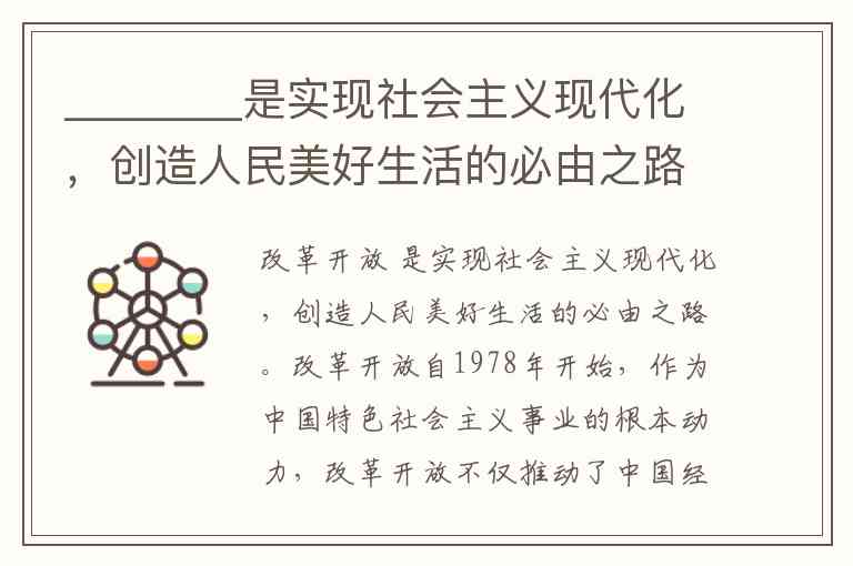 改革开放 是实现社会主义现代化,创造人民美好生活的必由之路。