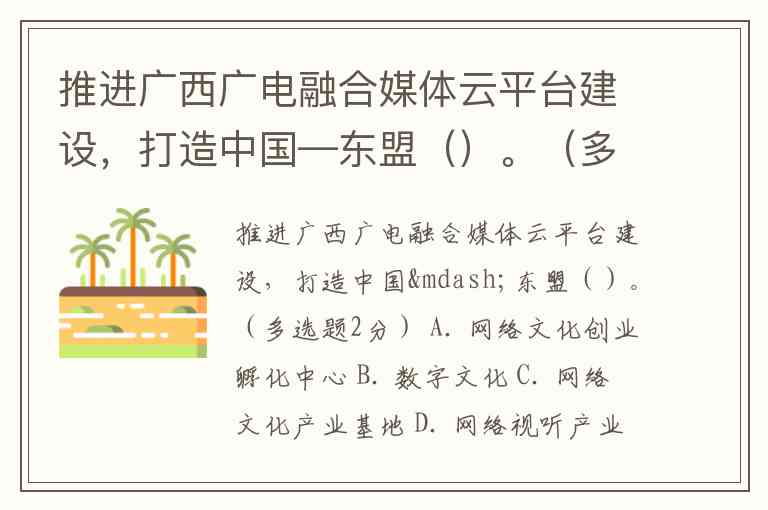 推进广西广电融合媒体云平台建设,打造中国—东盟的目标和方向主要包括: